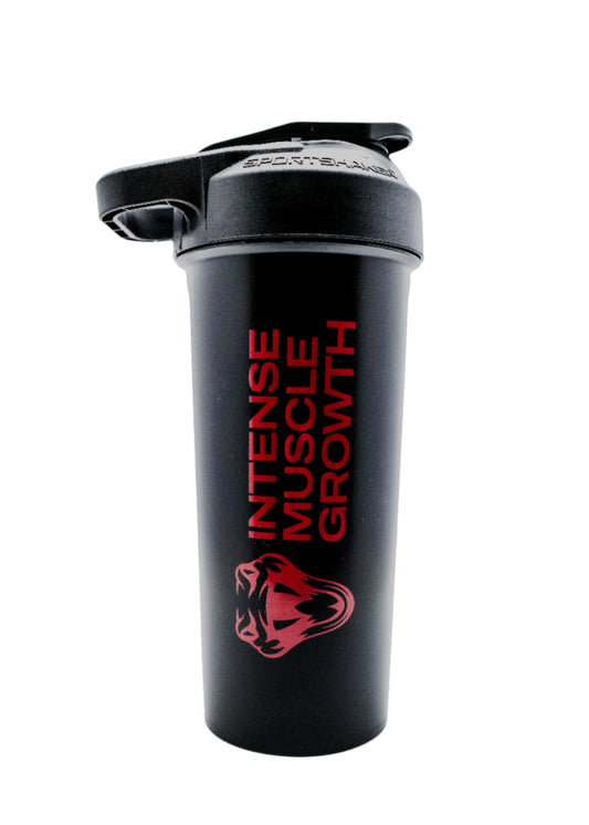 BOA Sports Shaker Protein Bottle, Flip-Top Lid, Elite Custom, Onyx Black Lid - Black with Red Logo.